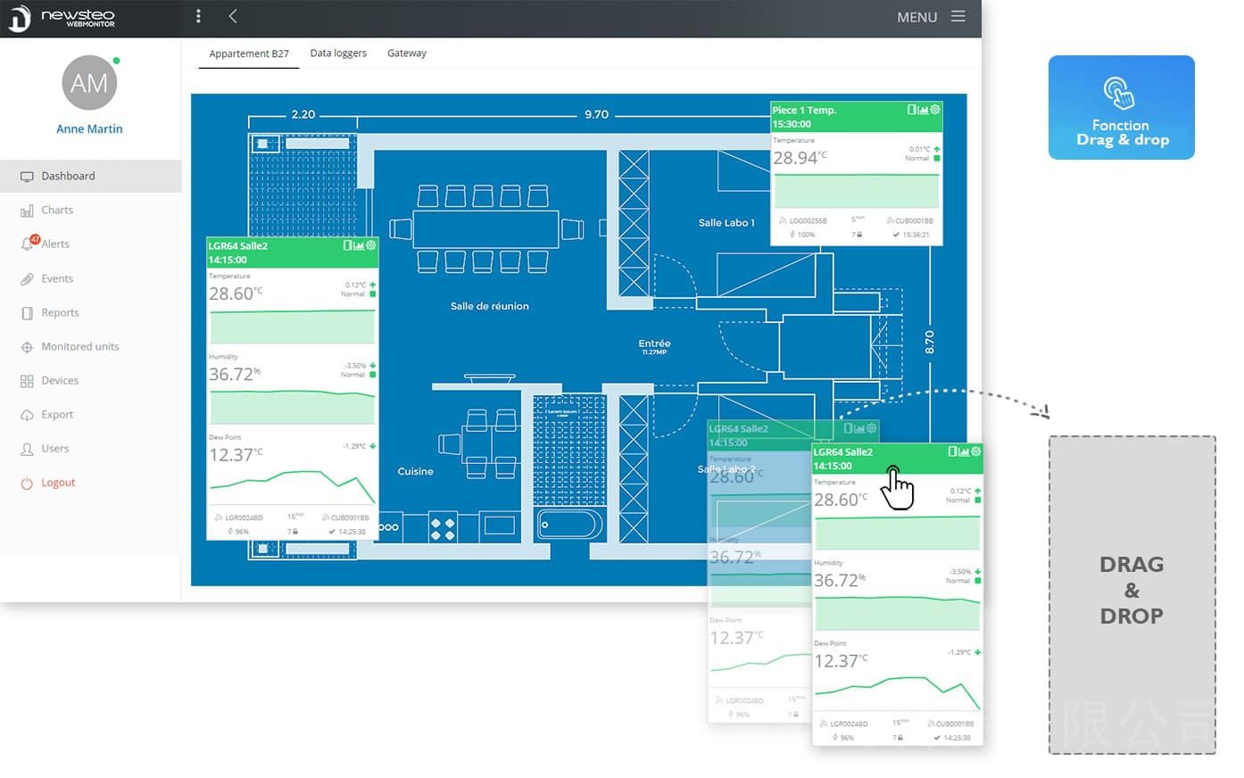 前湾的CUB22物流监控专用网关通过以太网或手机网络将测量结果传输到云平台数据库:Webmonitor。轻客户端解决方案,只需连接到 和认证,无论管理人员在哪里,都可以发送实时警报。管理人员可以通过互联网云平台断或者手机端随时访问测量结果。CUB22与前湾的无线三维冲撞仪TRE35、TRE37、TRP55等产品型号相互适配,自动自主连接,网关显示内容包括从每个冲撞仪接收的*后测量值的数据,可以直接在该屏幕上进行监控。此外,操纵杆在出现警报时会改变颜色:当测量值超出阈值时,会闪烁红色。