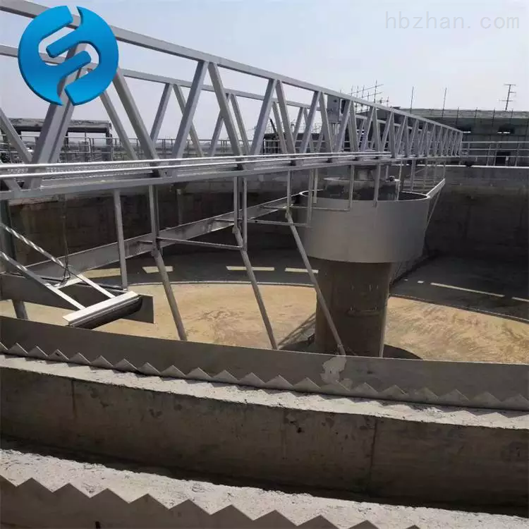 半桥式周边传动刮泥机用于污水处理厂圆形沉淀池,将沉降在池底的污泥刮集至池底集泥坑并将池面的浮渣撇向集渣斗,以便进一步处理。