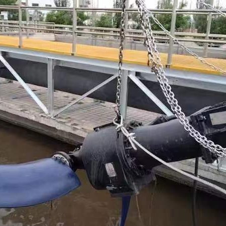 低速潜水搅拌机是一种新型、高效潜水搅拌机装置,该设备主要由潜水电机、叶轮、导流罩、密封机构、手摇卷扬机构、电气控制等部分构成。搅拌叶轮搅拌液体产生旋向射流,利用沿着射流表面的剪切应力来进行混合,使流场和流场以外的液体摩擦产生搅拌作用,在极度混合的同时,形成体积流,应用大体积流动模式得到受控流体的输送。