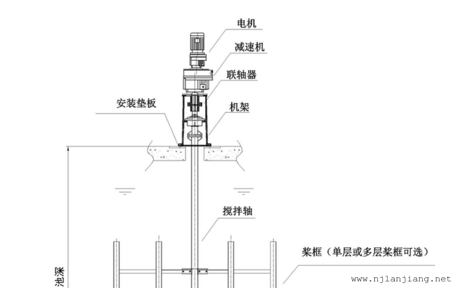 1、搅拌机桨叶采用框式搅拌形式,其动力效率高。根据池型及搅拌工艺要求可采用单层、双层或多层桨叶,可使搅拌介质同时产生径向和环向流动,可在要求的混合时间内达到需要的搅拌强度,满足混合速度快、均匀、充分等要求,且水力损失小,并可广泛适应搅拌介质比重、浓度、酸碱度、温度及粘度的变化,以满足各种搅拌工况的要求。
