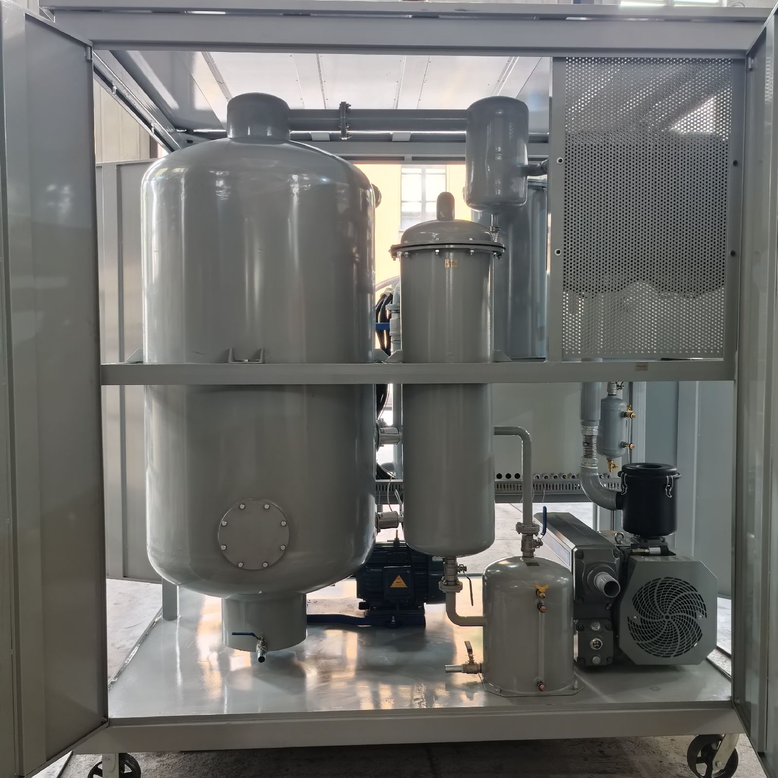 复合脱水工艺:融合聚结分离与真空脱水技术,采用世界领先的分水装置,快速高效地从高含水润滑油中分离出大量水分和微水。