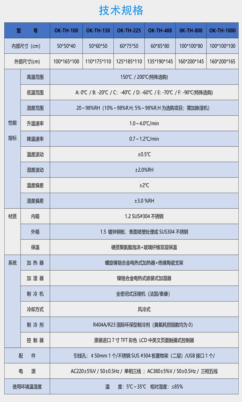 型号:OK-TH-1000 工作室尺寸:100×100×100cm 箱体尺寸:180×200×180cm