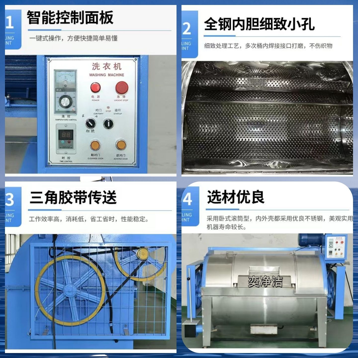 工业水洗机,又称工业洗衣机、滚筒洗衣机,按自动化程度分为半自动工业水洗机和全自动工业水洗机。工业洗衣机/水洗机/滚筒洗衣机/洗布机按容量大小分为:30kg、50kg、70kg、100kg、150kg、200kg、300kg等系列。