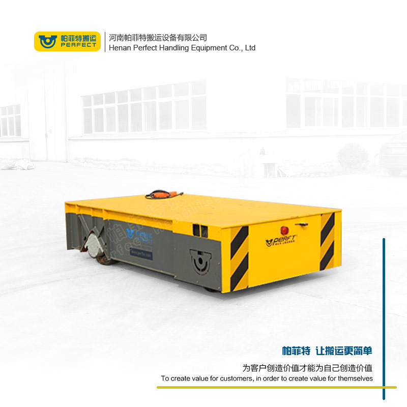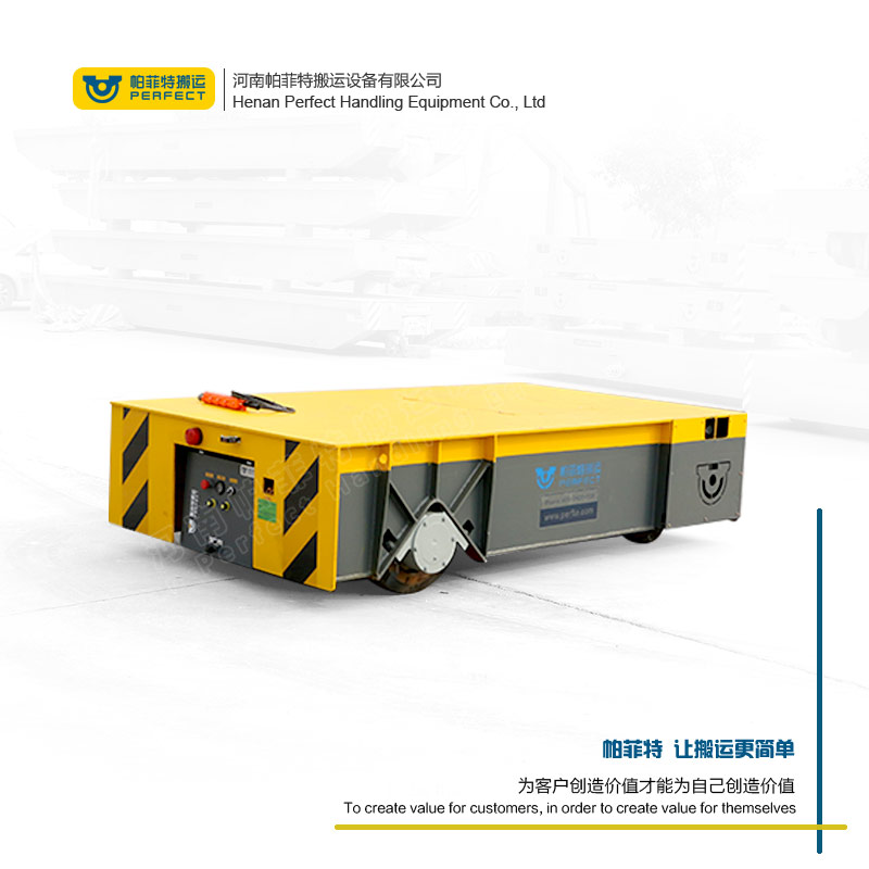 钢材型材过跨地轨车 运输水泥构件 重型全方位无轨转运车 是一种采用高强度的聚氨酯橡胶轮做为驱动轮和承载轮,非常耐磨,后期维护成本低。以蓄电池作为电源,电机减速机作为驱动系统,实心包胶车轮直接在地面行走的转运车,其运行不受限制,进口的车轮防止地面受损坏,360°原地转弯适应狭小的空间运行,360度防护、遇人自动停止等功能,解决了运行过程中的安全问题。触摸屏、摇杆操作等设计使操作更加人性化。全自动化无人操作的功能让它更加方便,嫣然成为工业4.0时代的产物。适应爬坡、防爆、粉尘等各种场合,150T大载重量的诞生,使其跃居车间搬运设备的重要位置。