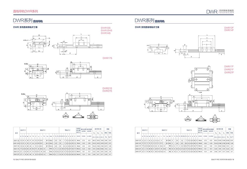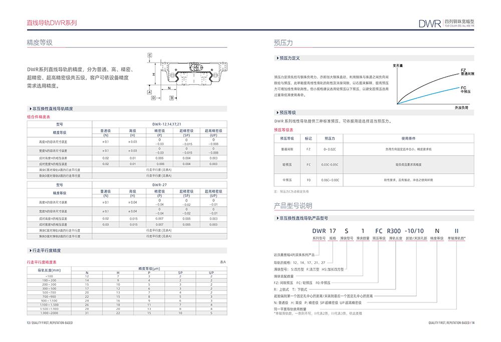 DWR系列直线导轨的精度,分为普通、高、精密、超精密、超高精密级共五级,客户可依设备精度需求选用精度。