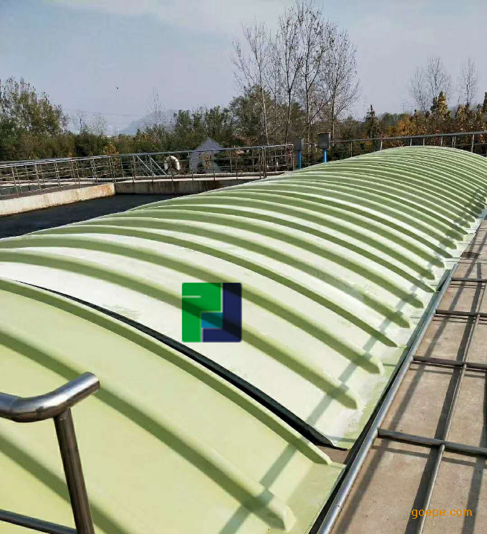 3、轻质高强、安装方便:玻璃钢集气罩比重仅为钢制品的1/3至1/4,固化程度高,载荷负重大,强度高,适用于大跨度池体,同时盖板可分为若干小块,便于运输、安装;