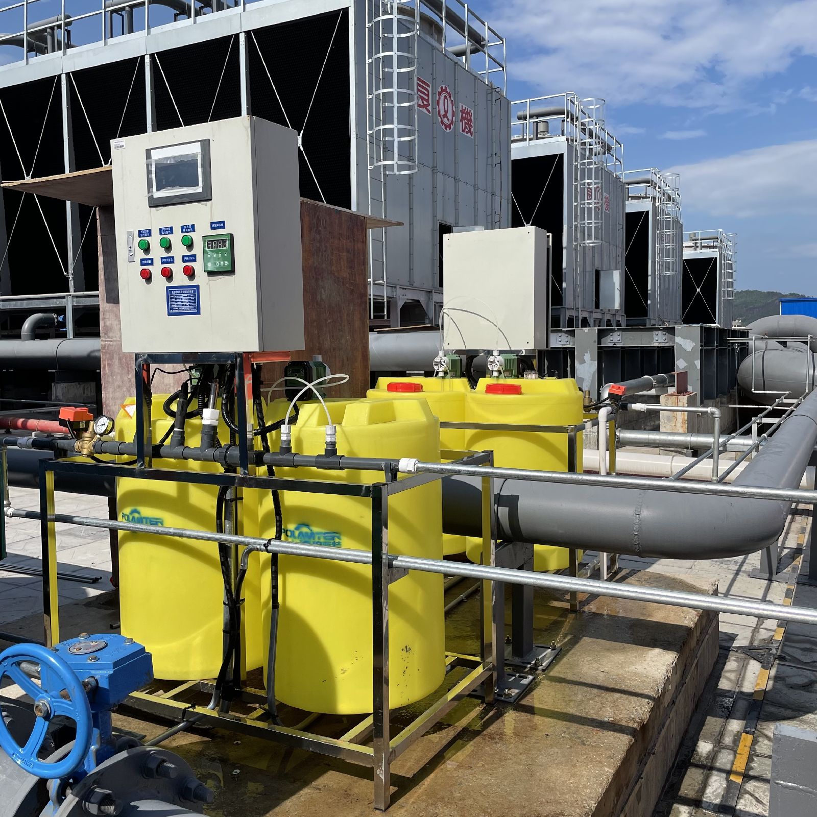 冷却水自动加药装置靠“在线感知+闭环投加”实现水质稳态:pH、电导率、ORP传感器每2 min把信号送回PLC,PLC比对设定值后驱动计量泵启停,使药剂始终落在ZIU佳浓度窗口。该闭环控制可把腐蚀速率控制在0.075 mm/a以内,优于人工加药约3倍。
