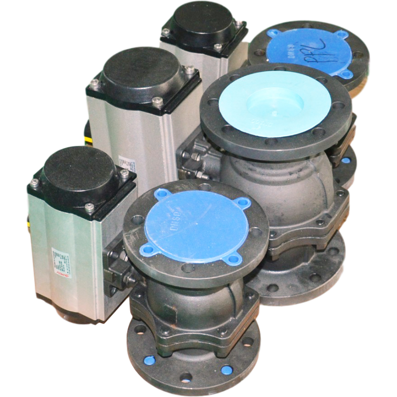 全通径的球体内腔为介质提供了阻力很小、直通的流道。气动执行器快速旋转90度