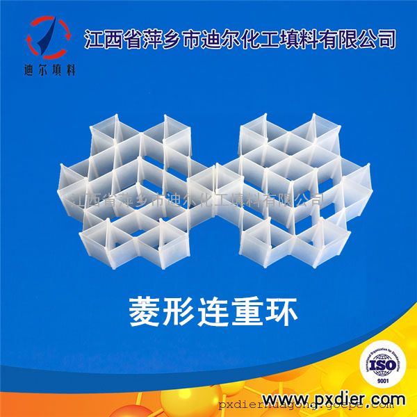 菱形连重环目前应多*多的材质是聚丙烯PP材质,被广泛应用于国内各大*钢铁厂中的焦化厂、煤化工厂中的脱硫塔,还可广泛应用于广于化工、冶金、焦化、环保和医药等行业使用。 菱形连重环填料可用于脱硫塔、洗苯塔、洗萘塔、洗氨塔、终冷塔、水洗塔中做洗涤塔填料,还可用于化肥热水饱和塔、脱碳、脱硫塔;石灰炉内CO2 清洗塔以及煤油、化工工程,特别适用于萃取和分馏过程。