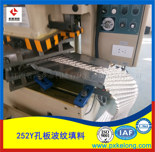 250Y孔板波纹填料是在金属薄板孔面打孔、轧制小纹、大波纹*后组装而成,具有阻力小,气液分布均匀,效率高,通量大,放大效应不明显等特点,应用于负压常压和加压操作。金属孔板波纹填料是一种在塔内按均匀几何图形排布,整齐堆砌的填料。250Y波纹板规整填料规定了气液流路,改善了沟流和壁流现象,压降可以很小,同时却提供更多的比表面积,在同等容积中可以达到更高的传质、传热效果.还由于结构的均匀、规则、对称性,在与散装填料具有相同的比表面积时,250Y波纹板规整填料的空隙率更大,具有更大的通量,综合处理能力比板式塔和散装填料塔大得多,因此以250Y波纹板规整填料为代表的各种通用型规整填料在工业中得到应用。