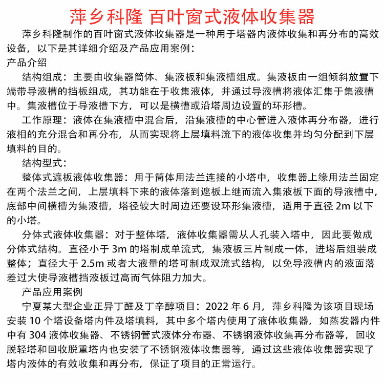 科隆塔内件填料塔液体收集器 斜板式 收集再分布效率高斜板收集器