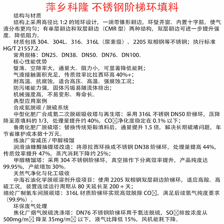 科隆填料不锈钢304阶梯环在合成氨脱碳 / 脱硫系统化工装置中的应用DN50