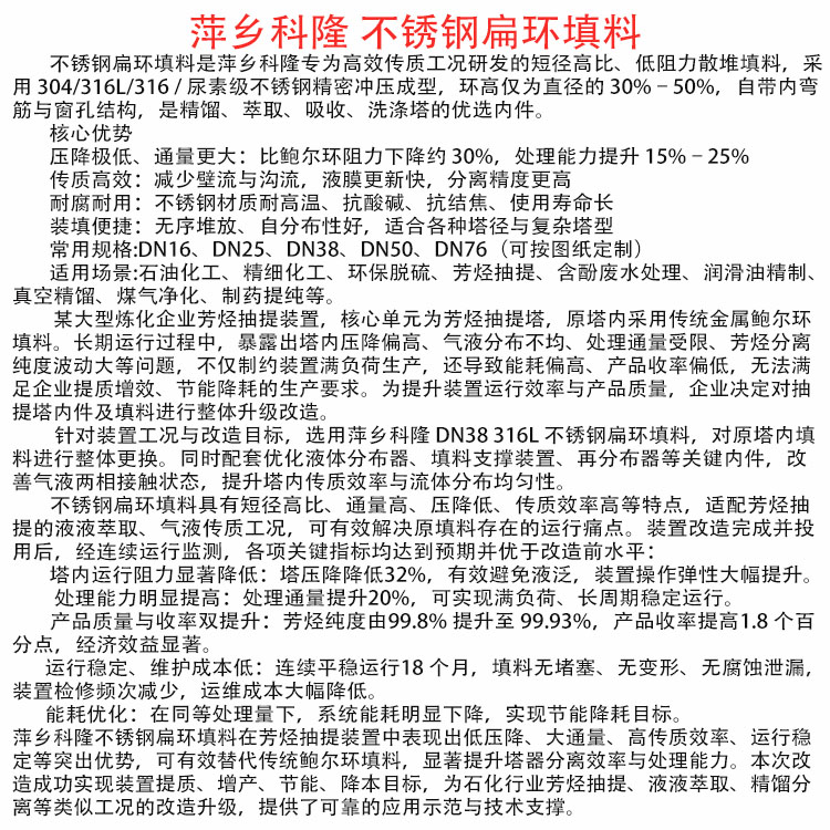 科隆填料不锈钢扁环应用某石化公司芳烃抽提装置提质改造DN50