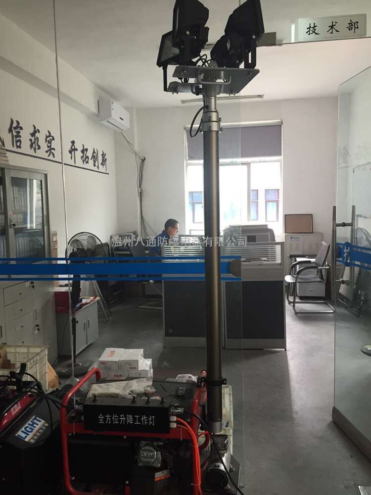全方位升降工作灯由照明灯具部件、气动升降部件、发电机部件、控制部件、行走支架部件5大部件组成。