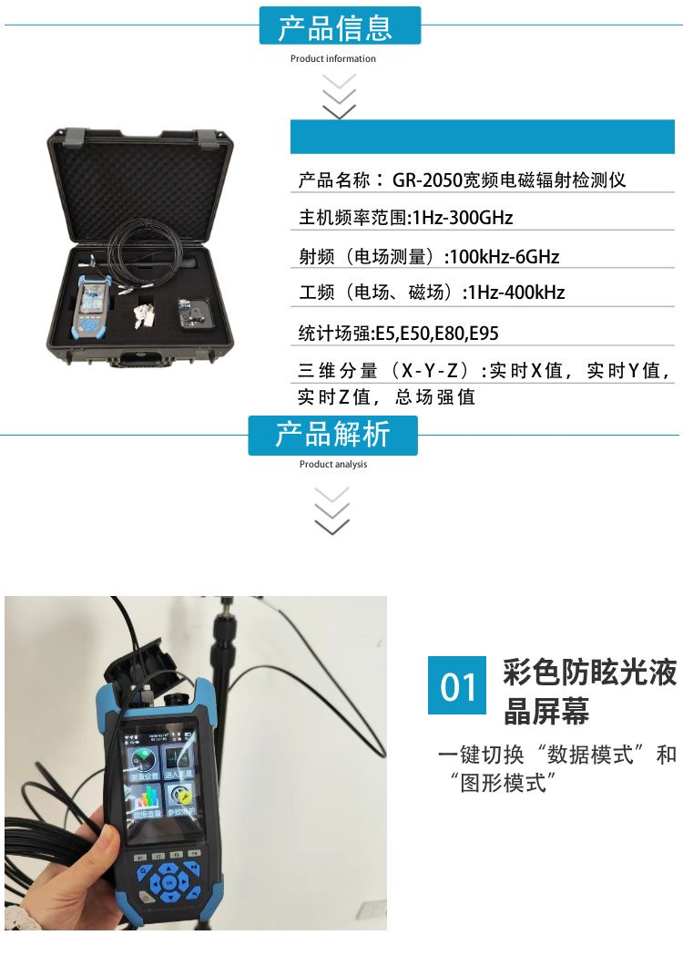国瑞力恒宽频电磁辐射检测仪工频射频电场磁场GR-2050