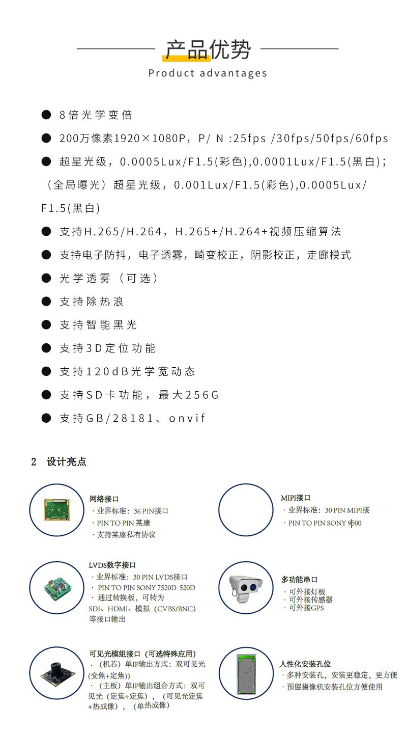 KONFEZI慷菲兹 200万超星光8倍国产化一体机芯 120dB宽动态 支持透雾CN-HZ8X9(F)-2MP