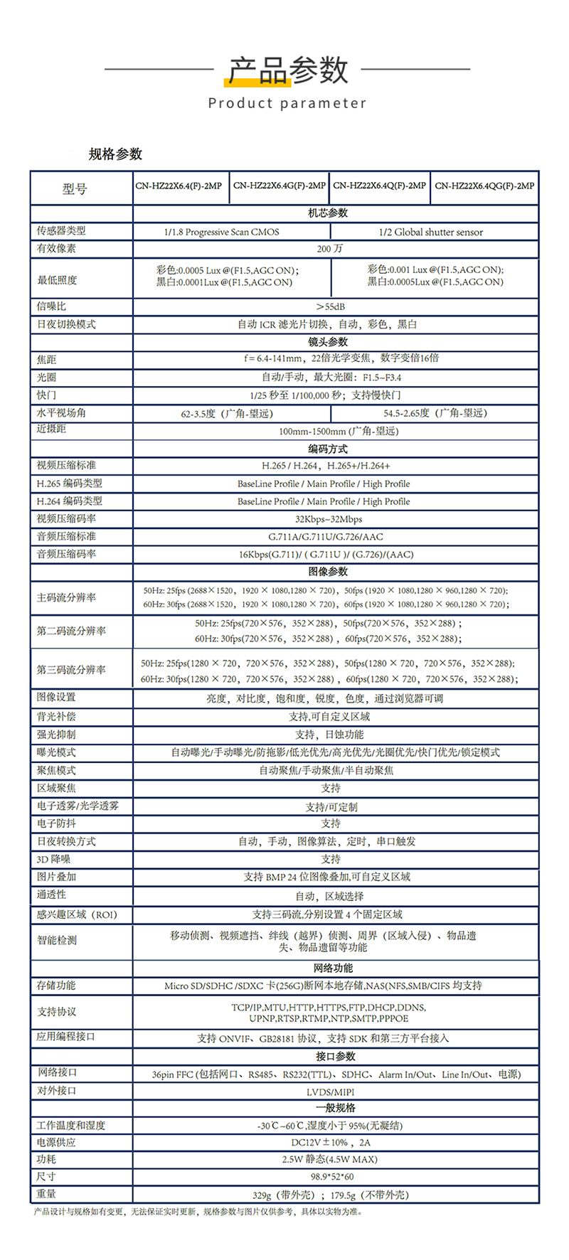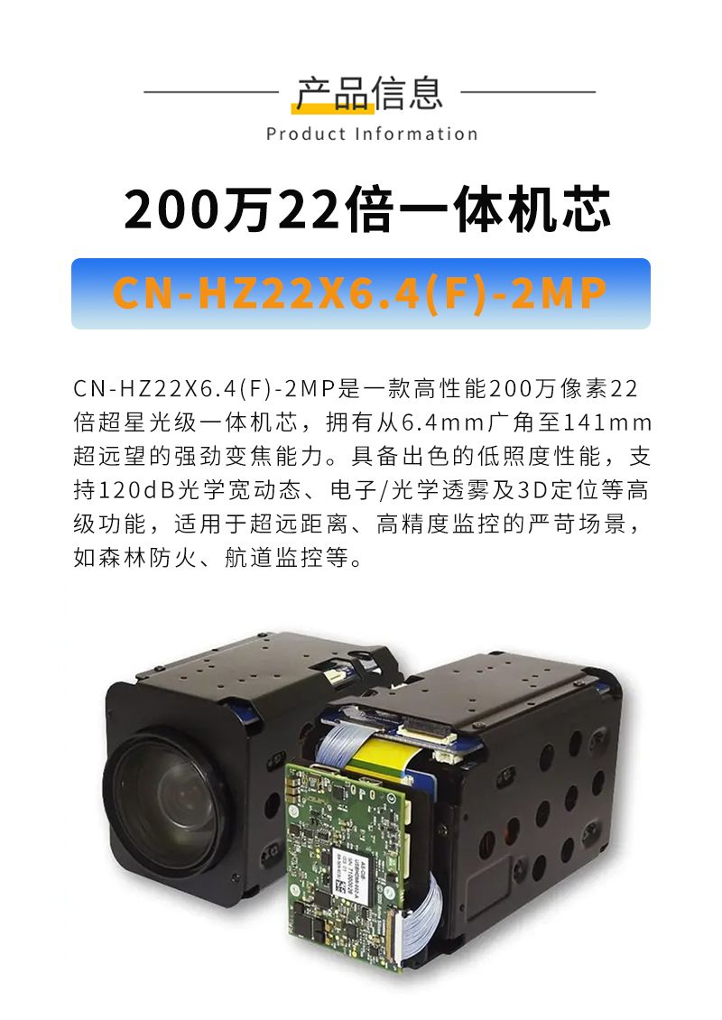 KONFEZI22倍全国产一体机芯 网络摄像机支持光学透雾与120dB宽动态CN-HZ22X6.4(F)-2MP