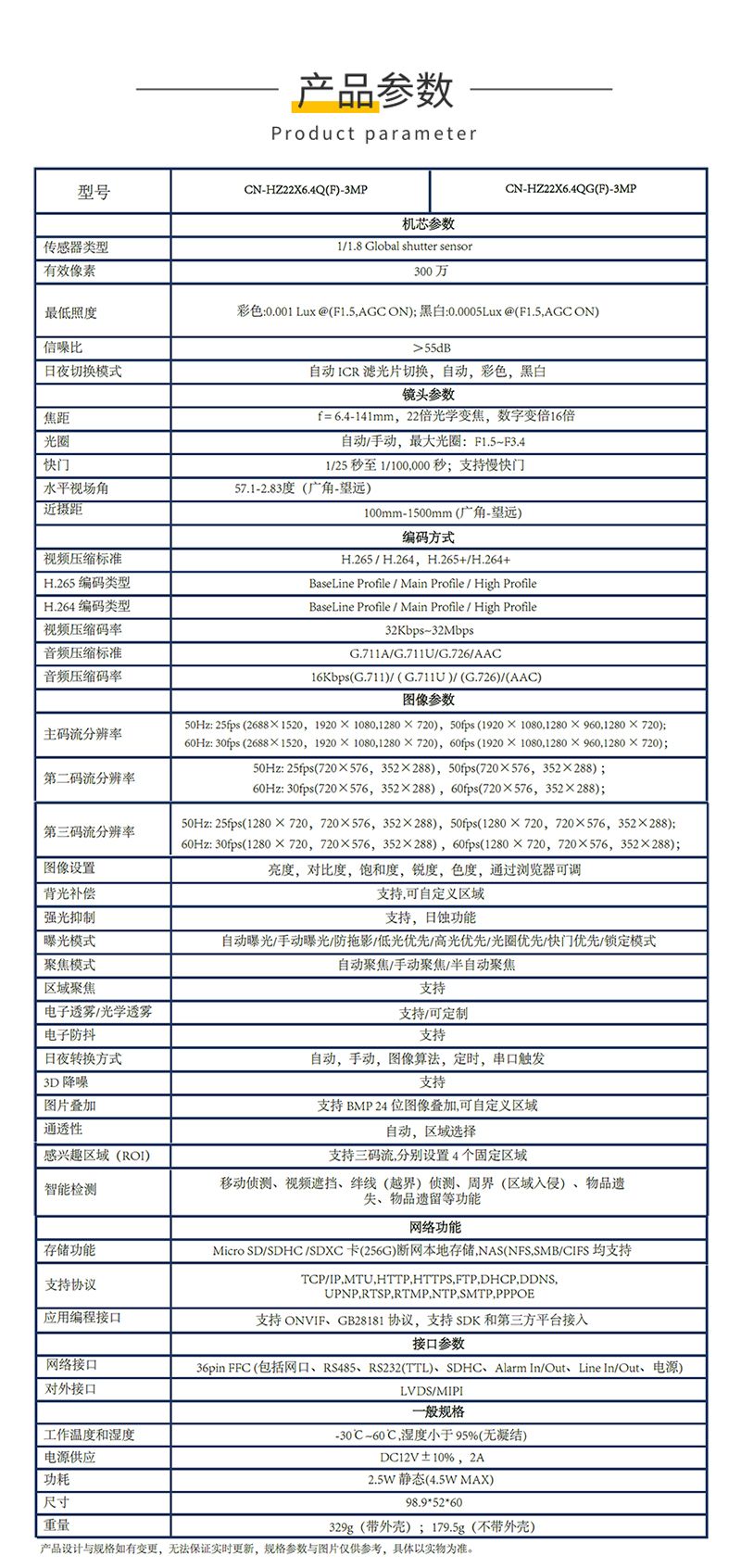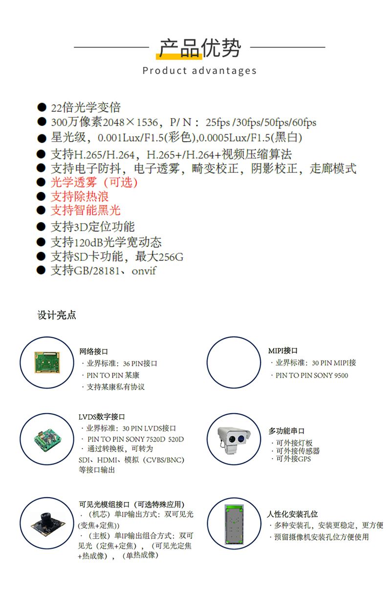 KONFEZI全国产22倍变焦300万高清机芯CMOS传感器监控一体机 CN-HZ22X6.4Q(F)-3MP