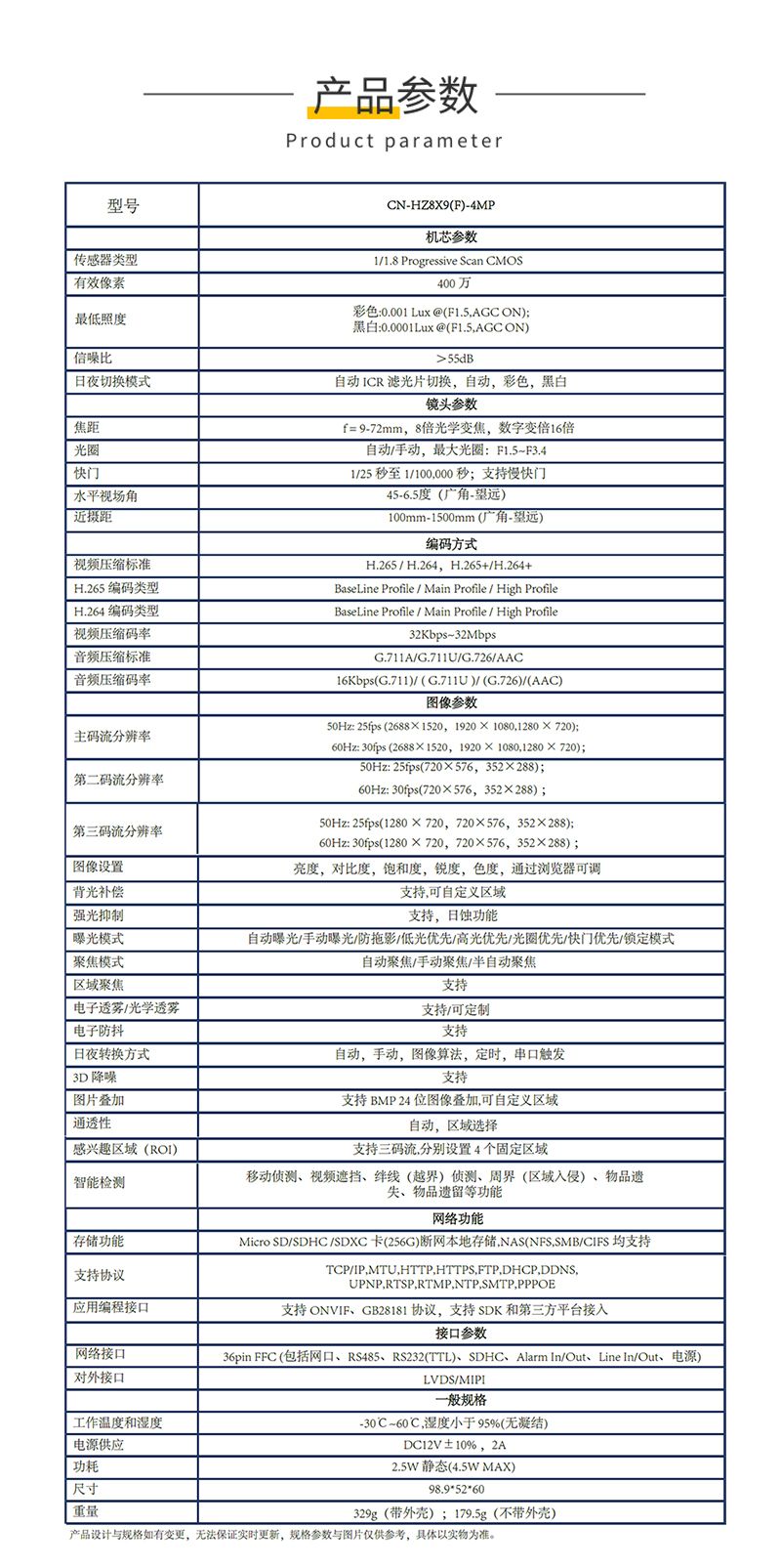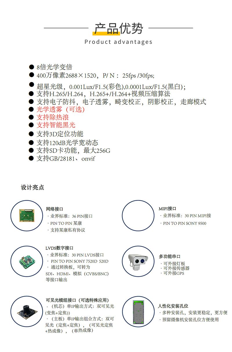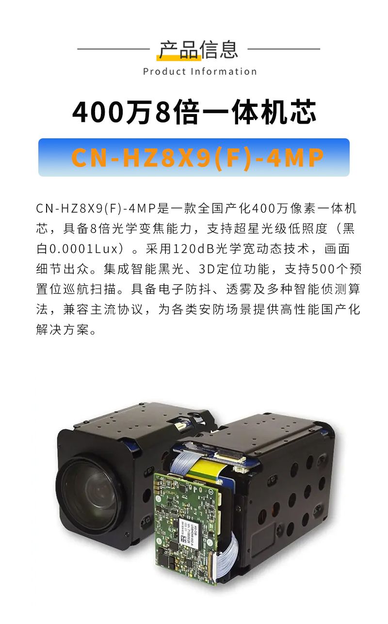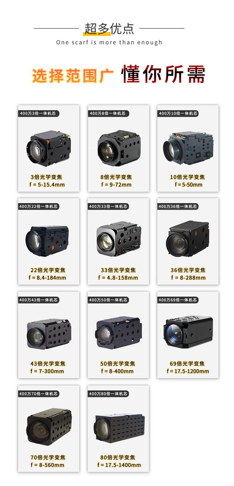KONFEZI全国产400万8倍光学变焦一体机芯支持智能黑光透雾 500个预置位CN-HZ8X9(F)-4MP