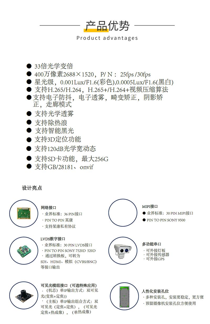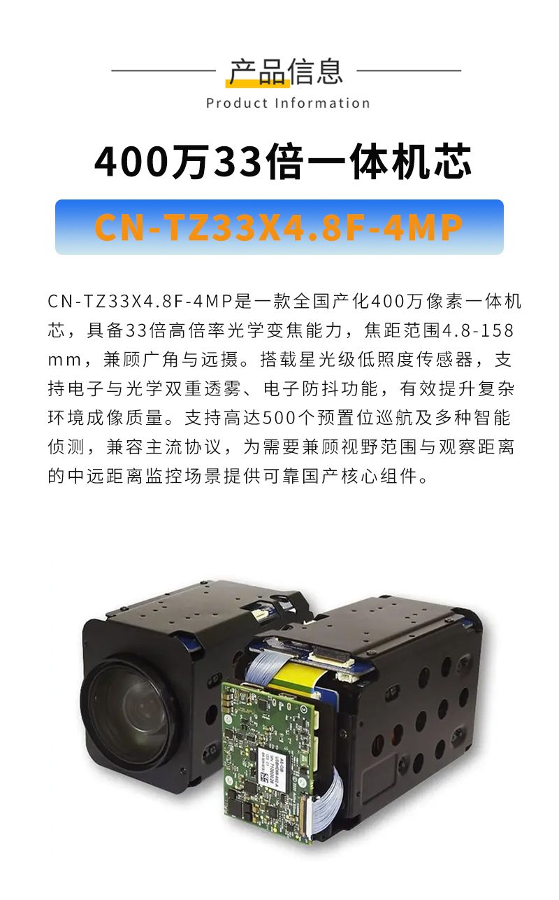 KONFEZI全国产33倍光学变焦一体机芯 4.8-158mm焦距 400万星光级低照度CN-TZ33X4.8F-4MP