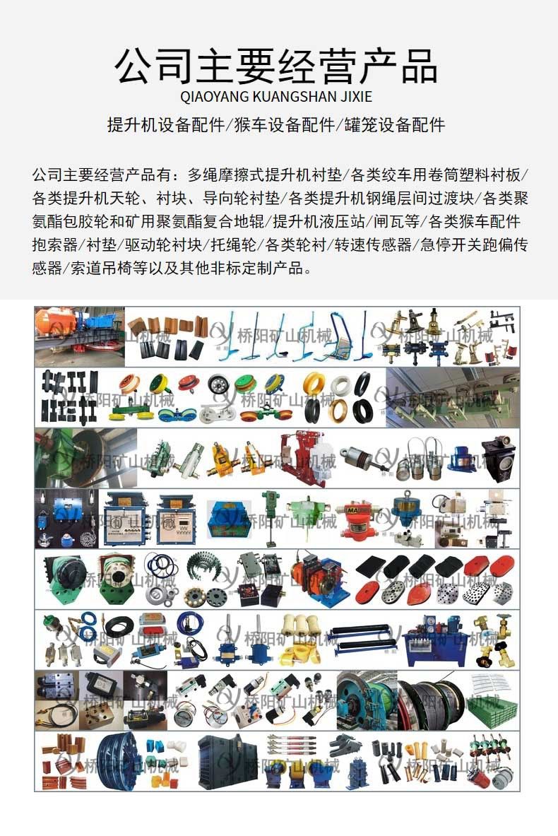洛阳桥阳矿山机械供应,聚氨酯天轮衬块在天轮上安装衬垫,可避免天轮的磨损,并减少钢丝绳的磨损、延长钢丝绳的使用周期,从而降低了更换天轮和钢丝绳的工作量。生产各种型号、材质的天轮衬块产品,主要材质有高分子衬垫、PP塑料衬垫、PVC天轮衬块、聚氨酯衬块、尼龙天轮衬块等。