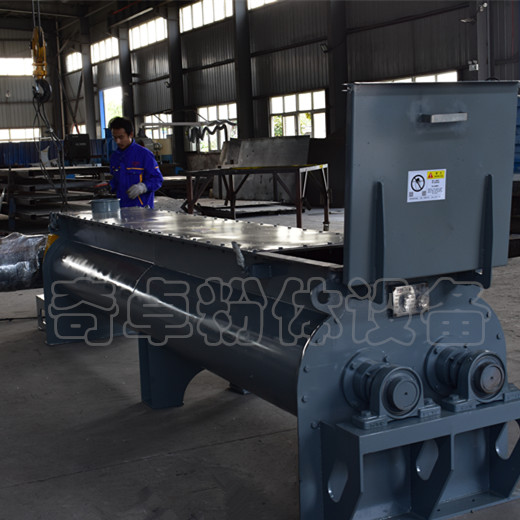 混合机设备介绍:奇卓无重力混合机由卧式筒体、传动机构、双轴搅拌桨叶组成,并可选配的破碎棒;工作时,双轴相对反向旋转带动不同角度的桨叶将物料沿轴向、径向循环翻动,在高线速度的作用下物料被抛起处于失重(即无重力)状态后落下,抛起和落下时物料交叉混合达到均匀。出料口分为大开门式和小开门式,大开门式出料快捷无残留。本机的优点是适用范围广、混合均匀度高、混合时间短。