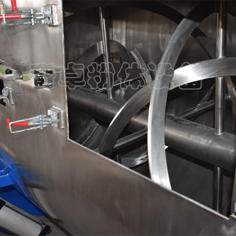 螺带混合机工作原理:奇卓WLD系列卧式螺带混合机由容器、螺旋搅拌叶片和传动部件组成:螺旋叶片一般做成双层或三层,外层螺旋将物料从两侧向中间汇集,内层螺旋将物料从中间两侧输送,形成对流混合。
