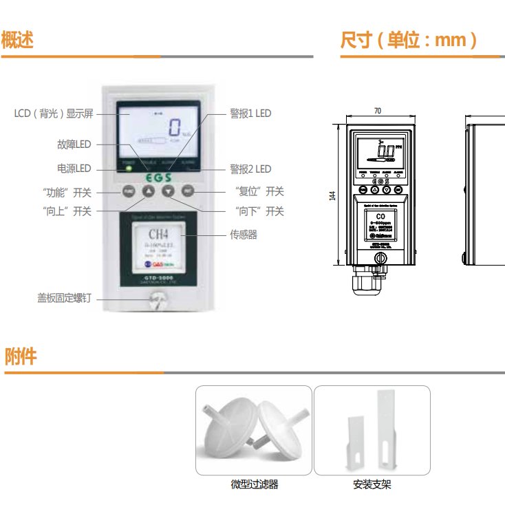| 操作方式 | 前面板开关(校准、维护、警报设置) |