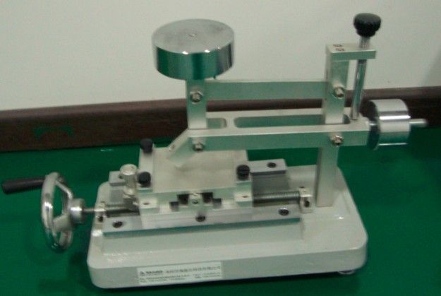 1 试验仪:要保证砝码的重量1000+/-50g垂直作用于铅笔芯与试验台交点上,使铅笔与试验台保持45度夹角不变。试验台可移动,用铅笔划出划痕。
