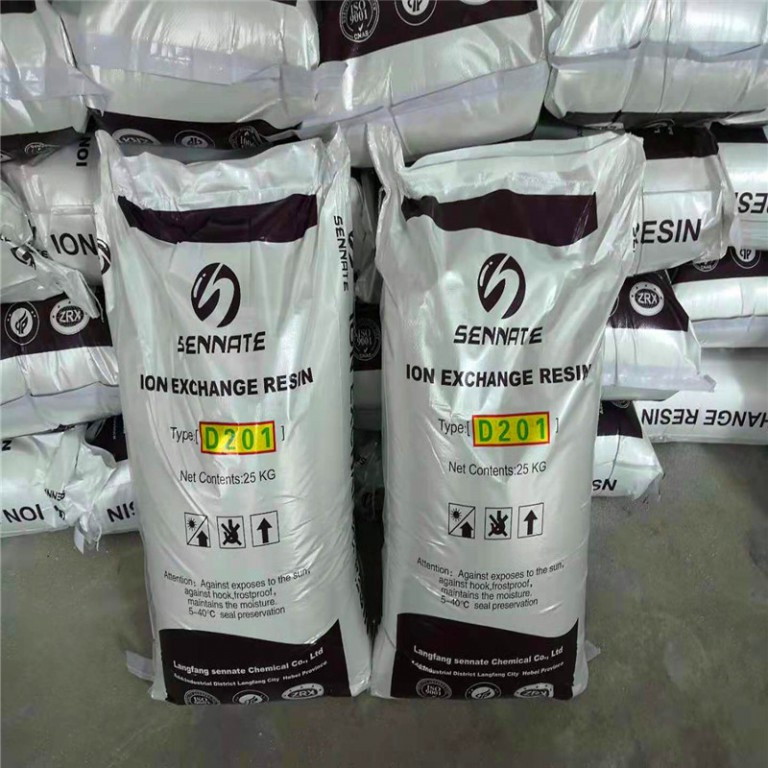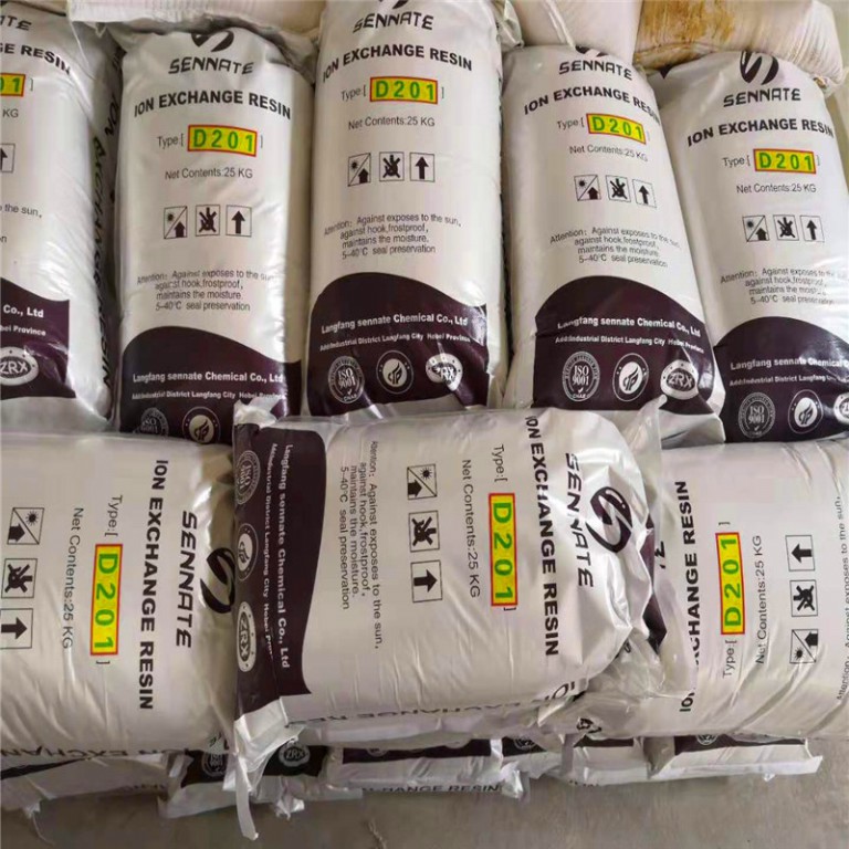 D201是在大孔结构的苯乙烯-二乙烯苯共聚体上带有季铵基[-N(CH3)3OH]的阴离子交换树脂。主要用于纯水、高纯水制备及凝结净化,还用于废水处理和重金属回收。
