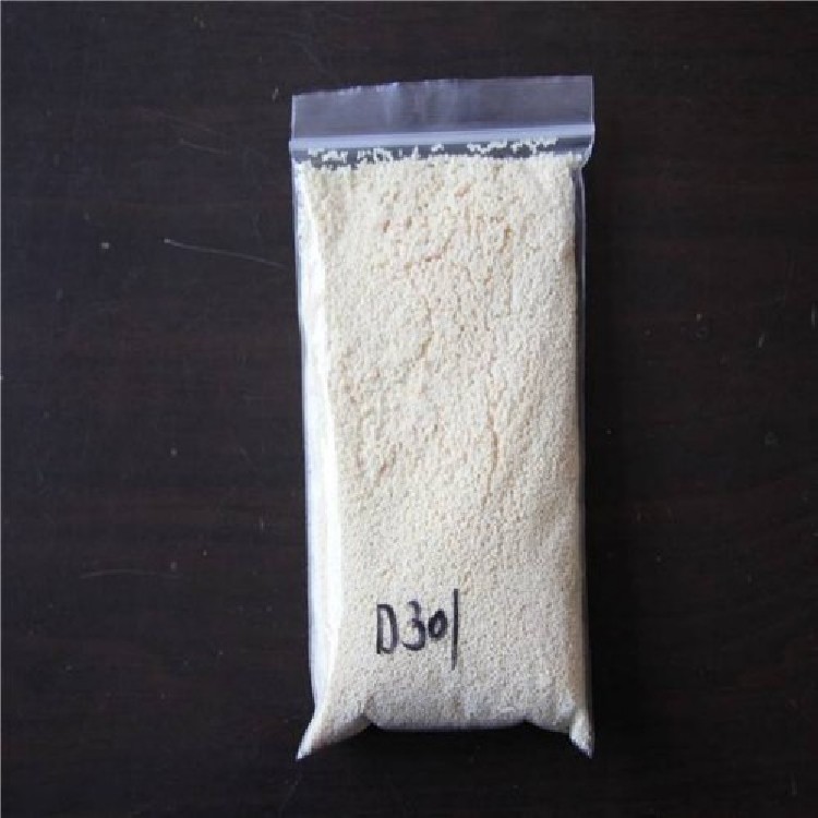 D301是在大孔结构的苯乙烯-二乙烯苯共聚体上主要带有叔胺基[-N(CH3)2]的阴离子交换树脂。主要用于纯水、高纯水制备,尤其适用于含盐量、有机物含量较高水源的处理,还可用于含铬,废水处理、糖液脱色等。