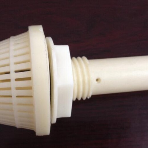 滤头安装在滤板上,其主要作用是使BAF曝气生物滤池的底部配水及气水联合反冲洗时配气均匀。本滤头采用进口ABS工程塑料制造,承压强度高,踩碰不碎,在滤头结构中强化螺纹,增设橡胶垫圈,联接牢固、不脱落。滤头帽底座设计增强底缝,使与滤板间无死水区,不积泥等优点。