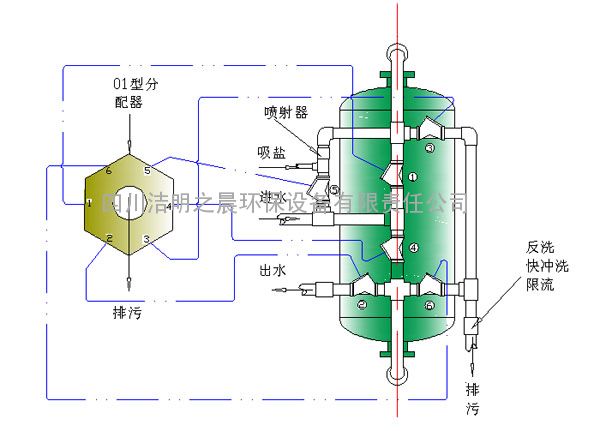 | 22 | 喷射器 | 洁明 | 吸入饱和盐液混合稀释再生液浓度,与隔膜阀19,8组合使用 |