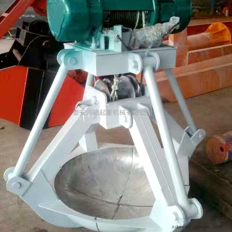 其本身带有闭合结构,可以理解为是把标准的电动葫芦装到抓斗上作为开闭结构,由于在闭合时不再像四绳抓斗那样受闭合绳向上的拉力,设备本身的重量全部都有抓取作用,因此抓取效率更高。