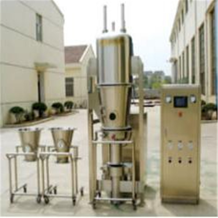沸腾制粒机主要用于:医药、食品、化工等行业的粉末物料混合、制粒、干燥、颗粒"顶喷"包衣等作业。如片剂颗粒、速溶饮料、调味品、鸡精、咖啡、粉状颗粒、块状物料、中药浸膏、调味料等颗粒。
