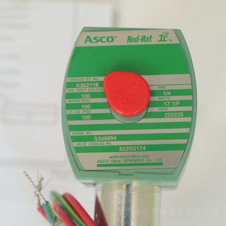 ASCO电磁阀8320G174,购买进口液压、气动、自动化控制工业配件,认准“上海韦米机电设备有限公司”,产品图片实物拍摄,保证原装产品,品质保障,售后无忧,批量零售,价格优惠,常用产品现货供应。欢迎新老客户咨询采购!
