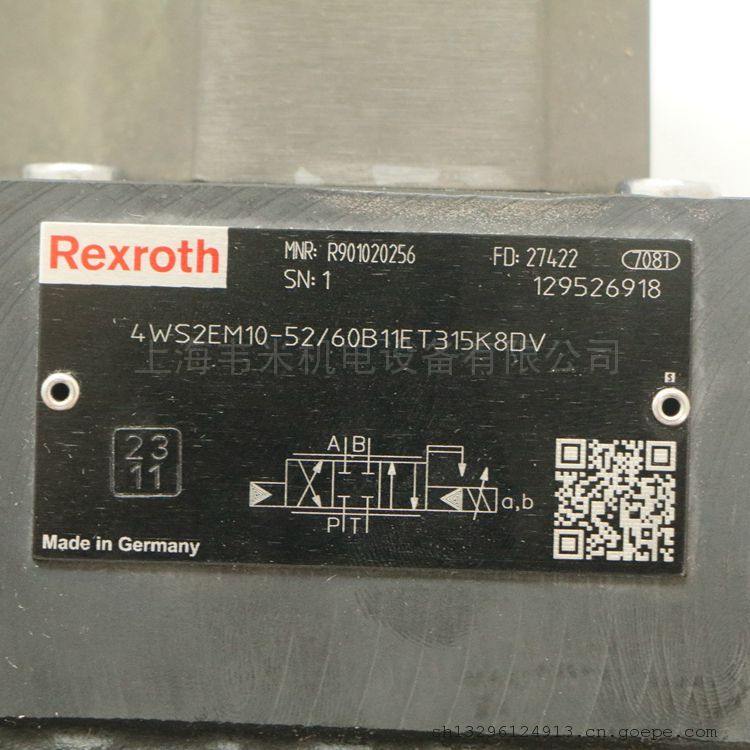 REXROTH伺服方向阀R901020256 4WS2EM10-52/60B11ET315K8DV,上海韦米机电设备有限公司主营供应产品,产品图片实物拍摄,原厂原装,质保一年,大量产品现货供应,价格优惠快速报价,联系人:雷青。欢迎咨询采购!
