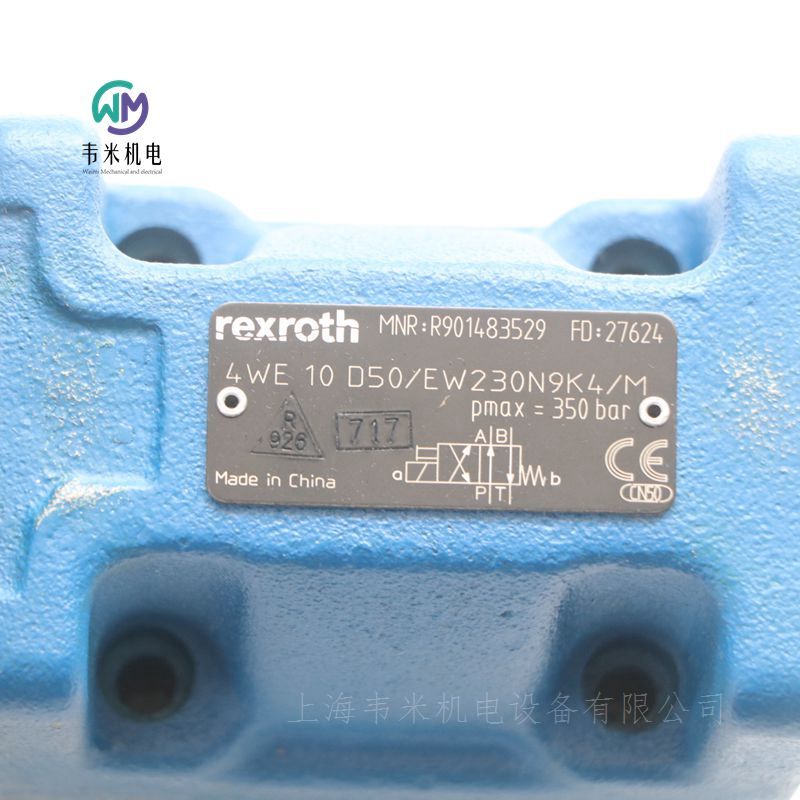 REXROTH二位四通电磁阀4WE10D50/EW230N9K4/M,上海韦米机电设备有限公司主营产品。现货库存;产品实拍图片,原厂原装,价格实惠;热诚欢迎新老客户咨询购买!