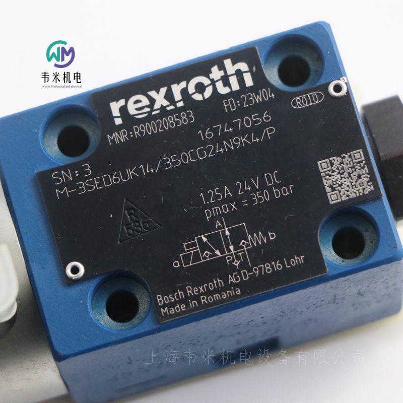 REXROTH电磁阀座M-3SED6UK14/350CG24N9K4/P,上海韦米机电设备有限公司主营供应产品,产品图片实物拍摄,原厂原装,质保一年,大量产品现货供应,价格优惠快速报价,联系人:雷青。欢迎咨询采购!