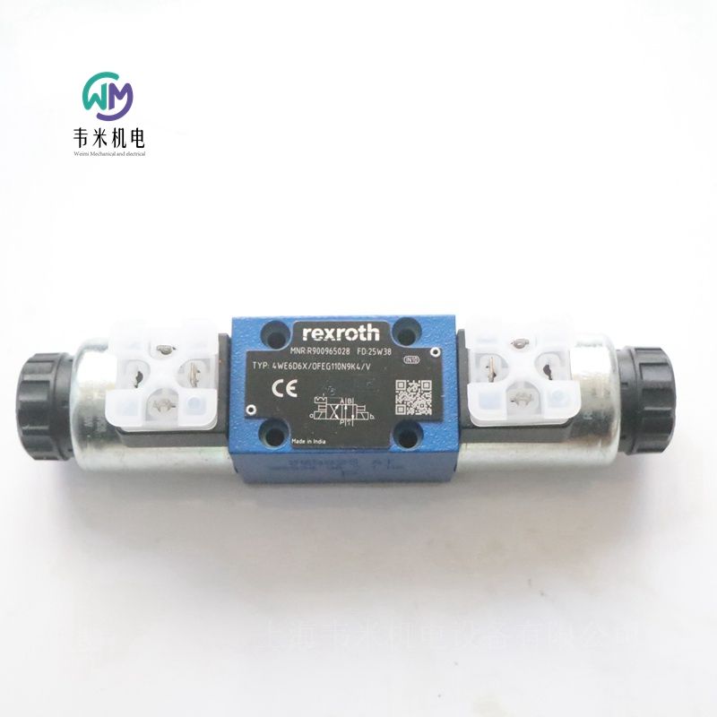 力士乐电磁阀4WE6D6X/OFEG110N9K4/V,德国REXROTH品牌原装,印度产地,现货库存,购买进口液压、气动、自动化控制工业配件,认准“上海韦米机电设备有限公司”,公司经营进口品牌产品十多年,保证原装产品,品质保障,售后无忧,批量零售,价格优惠,产品图片实物拍摄。欢迎新老客户咨询采购!