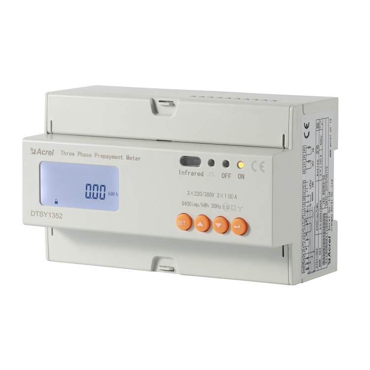 DTSY1352三相预付费电能表分别用于计量额定频率50Hz的三相交流有功电能,具有预付费控制、负载控制、时间控制及RS485通信等功能,性能指标符合GB/T17215.321-2008标准。