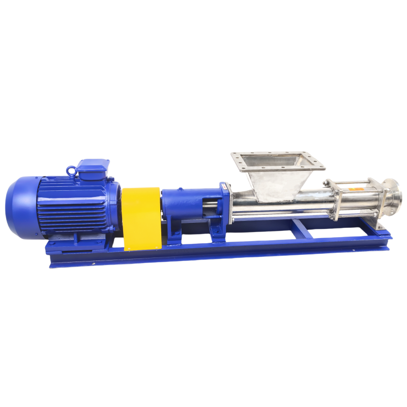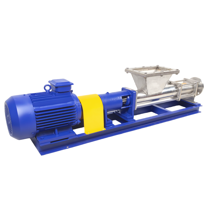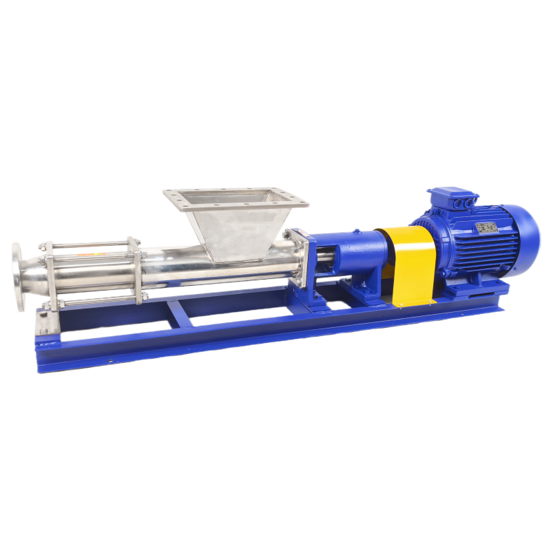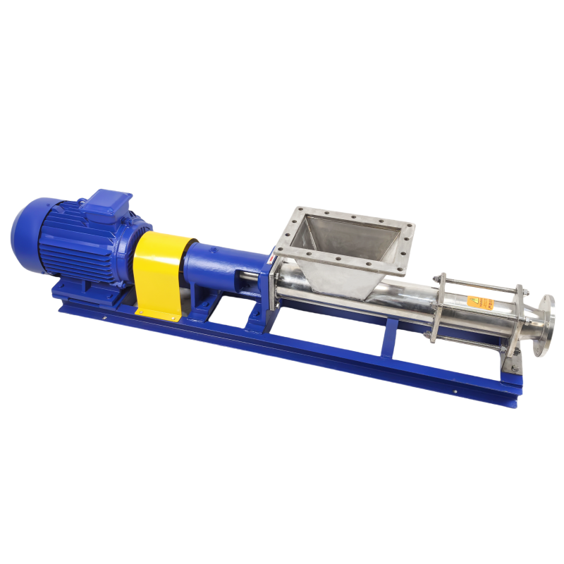 G型料仓式推送型螺杆泵基于G系列螺杆泵增加料仓,连杆轴增加螺旋推进器,适用于不能自流的液态或膏状物料,更可加装搅拌器防止物料沉淀。当物料浓度较高时,增添能挤压粉碎的大漏仓即可防止堵塞。推进器螺杆泵可配各类驱动器。可根据客户要求定做各种形态的料仓,保持进料的通畅性,从而达到进料、出料无压力。料仓式螺杆泵的效率更高、使用寿命更长,彻底解决客户的难题。进出口形式可选配卡箍快装式、法兰式、内螺纹、外螺纹、活接头。泵体材质可分为:铸铁、不锈钢304、不锈钢316、316L,按实际介质要求选择。