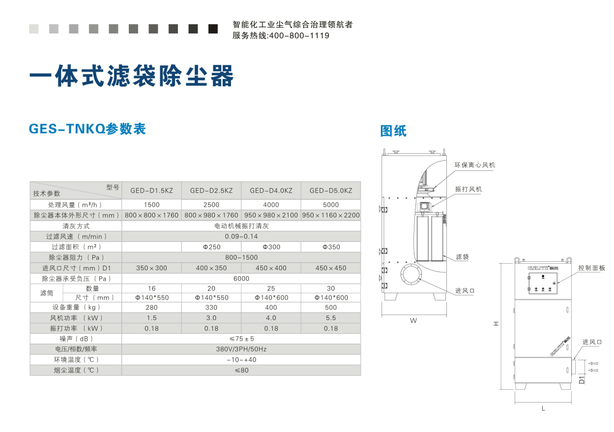 聚英环保GED-DNKZ 一体式单机振打式布袋滤袋除尘器