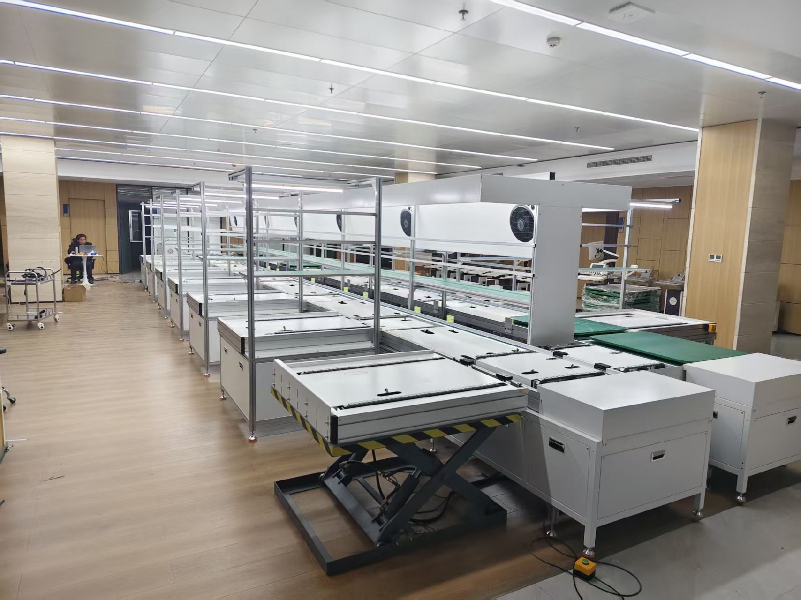 4、电气与辅助配套:电气系统三相五线制配可靠接地,完全符合国标安全规范。工装板是20mm厚的防静电夹板,带T型包边和专用蓝色胶框,考虑到了物料放置。每个工位还配备了防爆插座、电批滑轨和风批小车,为工人操作提供了充分便利。