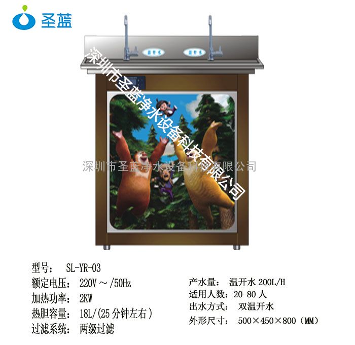 深圳市圣蓝净水设备科技有限公司是一家*智能健康饮水机研发生产单位,产品主要有校园刷卡饮水机、智能开水机、不锈钢直饮水机、节能饮水机、即热开水器、纯水机-纯水设备、变频供水系统、水处理设备8大系列产品。圣蓝借助国内5所211高校强大的技术力量和人才资源优势,产品在智能、安全、健康方面获得了多项实用型发明专利。