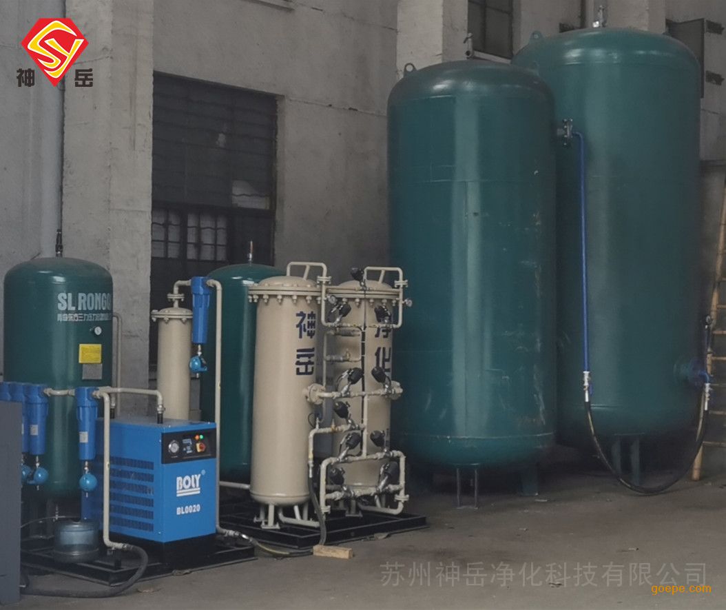 两个吸附塔交替进行吸附和再生,从而产生流量和纯度稳定的产品氮气。两只吸附器的切换由PLC控制的程控阀自动完成。一台变压吸附制氮装置的性能优劣取决于吸附器、碳分子筛、工艺流程、设备结构以及电磁气动阀等部件的性能。我公司生产的变压吸附制氮装置选用日本三菱公司生产的PLC可编程序控制器,选用德国BF碳分子筛、德国BURKET公司生产的电磁气动阀。就可以产出需要氮气。
