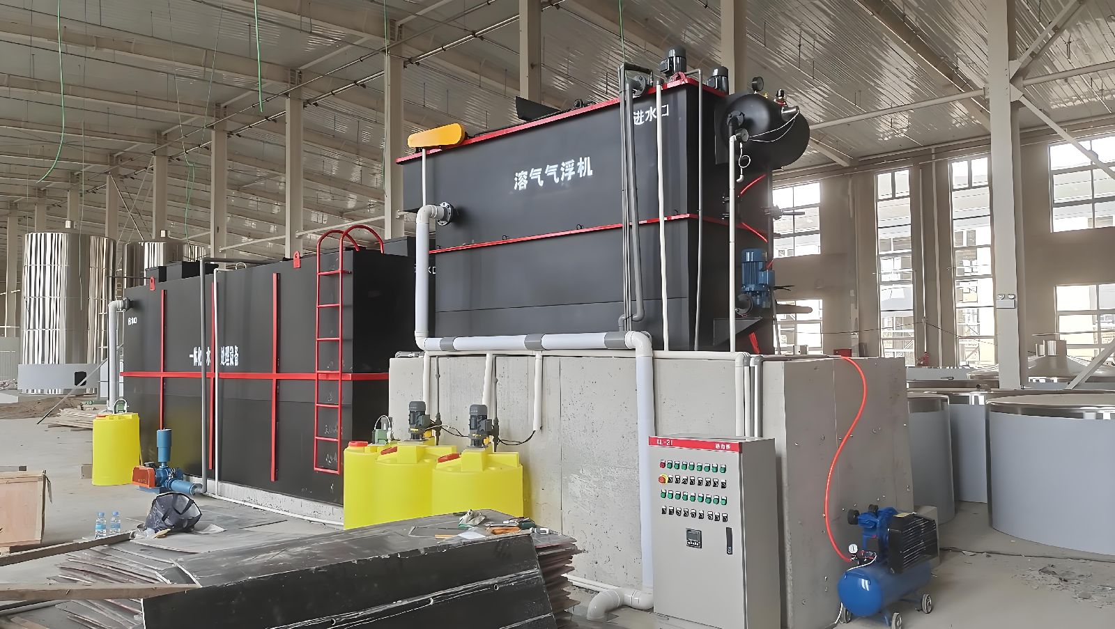 斜板沉淀池,实现泥水分离)、过滤装置(砂滤、活性炭过滤,去除残留