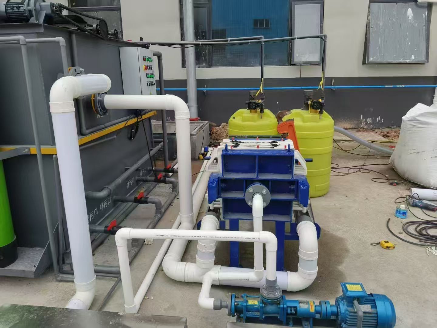 沉淀池及过滤器产生的污泥经污泥泵输送至板框压滤机(过滤面积