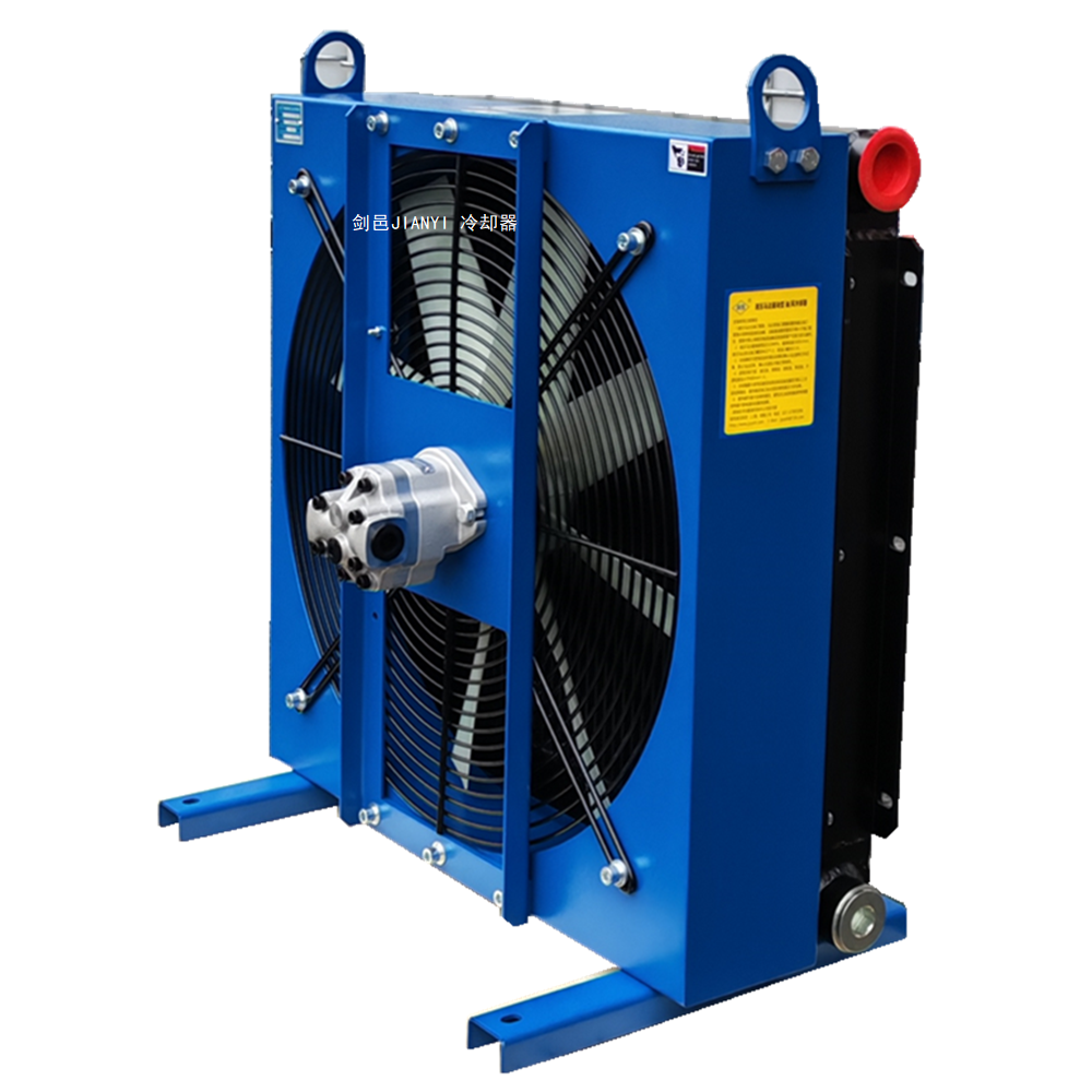 产品特性:冷却功率大、传热效率高、通过流量大,使用压力高、结构紧凑、安装方便、维护简单、节能环保、使用寿命长。本系列产品设计采用铝合金高速齿轮液压马达驱动高强度玻纤维材质风叶,高性能的液压马达可在恶劣的工况环境下长时间不间断工作,风冷却器的运行无需电源,与主机压力管路连接即可。液压马达驱动转速高风量大能够满足各种工程机械液压系统的散热冷却要求。