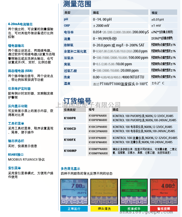 Kontrol 100 PH/ORP分析仪的特点:
